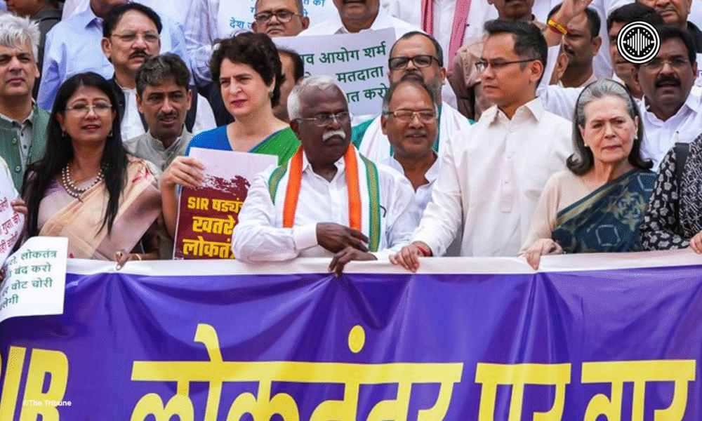 Congress Parliamentary Party Chairperson Sonia Gandhi today joined a significant protest by the INDIA bloc in the Parliament complex, demonstrating solidarity against the Election Commission of India’s (ECI) ongoing Special Intensive Revision (SIR) of electoral rolls in Bihar. On Thursday, July 24, 2025, prominent opposition leaders and Members of Parliament (MPs) gathered at Makar Dwar, raising slogans and displaying banners to demand a rollback of the controversial exercise and a parliamentary discussion on the matter.